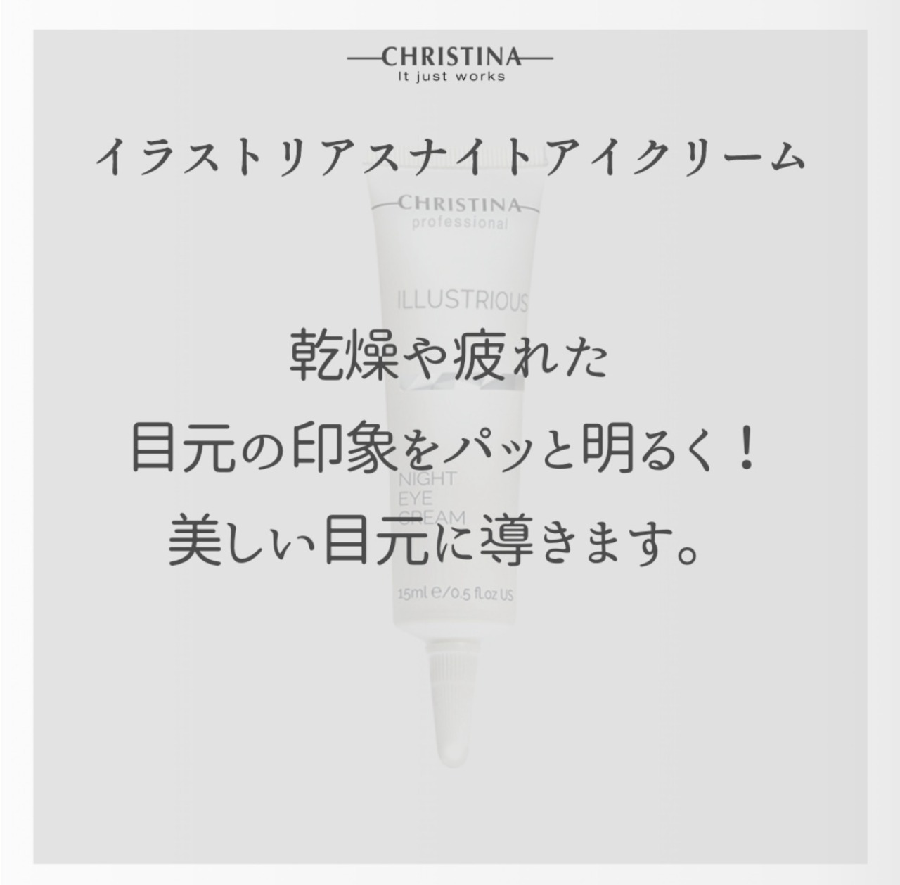 目の下の肌を明るくします 目の周りの乾燥によるくすみ ハリ不足を減らします 肌を外的環境から保護します